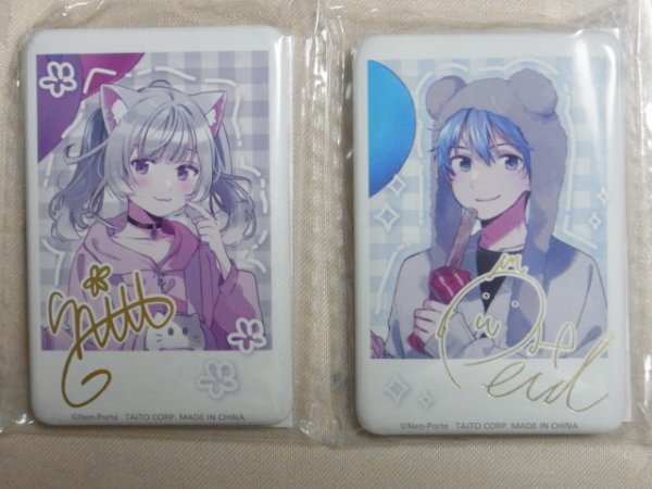 - ネオポルテ 描き下ろしスクエア缶バッジ 夜絆ニウ 白雪レイド 2種まとめて