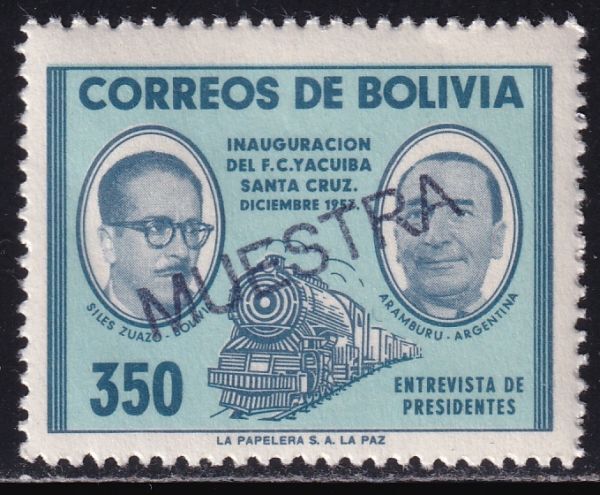 - ak5714 ボリビア 1957 鉄道 見本 #409 ヒンジ跡あり
