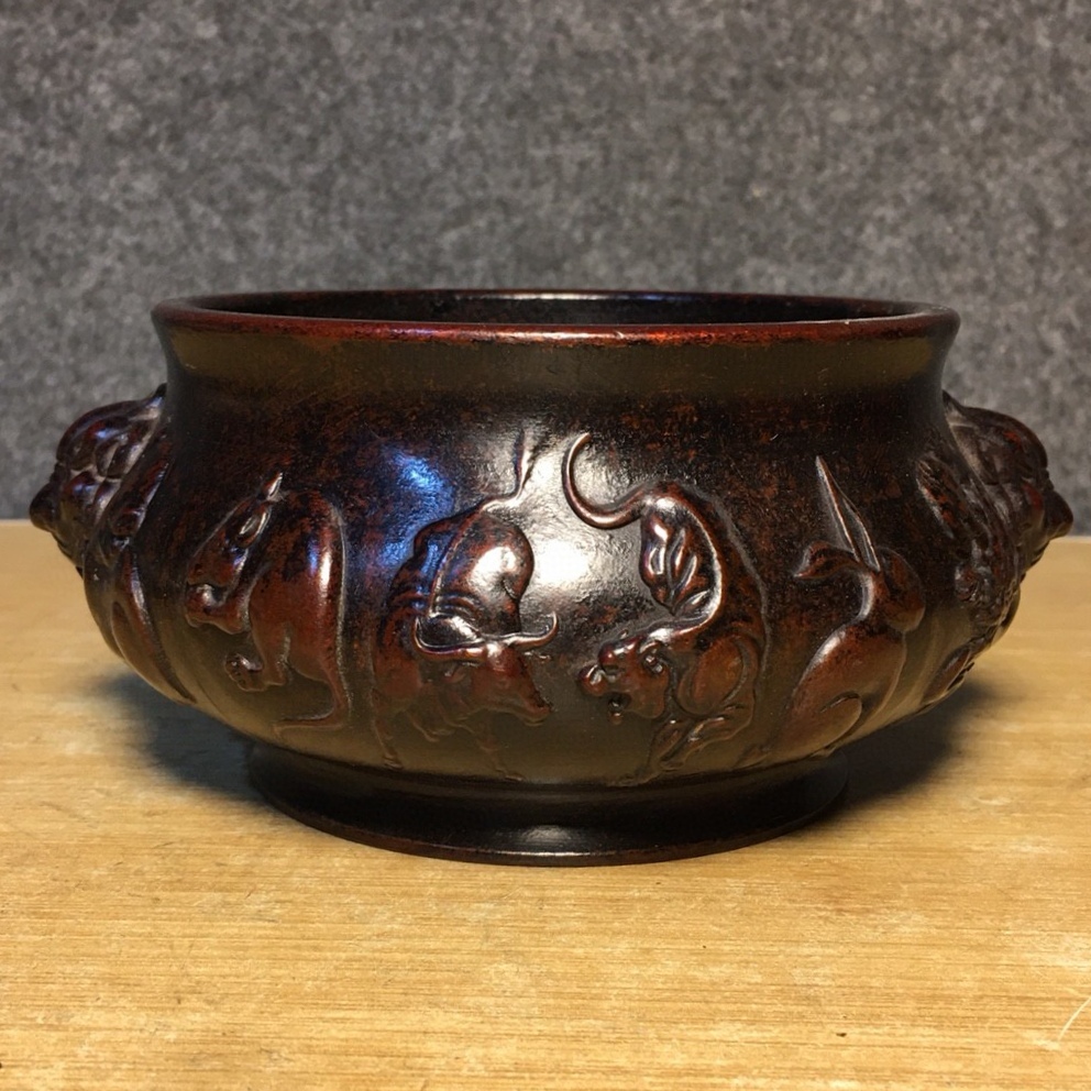 - 旧蔵 清 純銅 香炉 香道具 銅製 銅器 極細工 中国古玩 骨董品 古美味 207