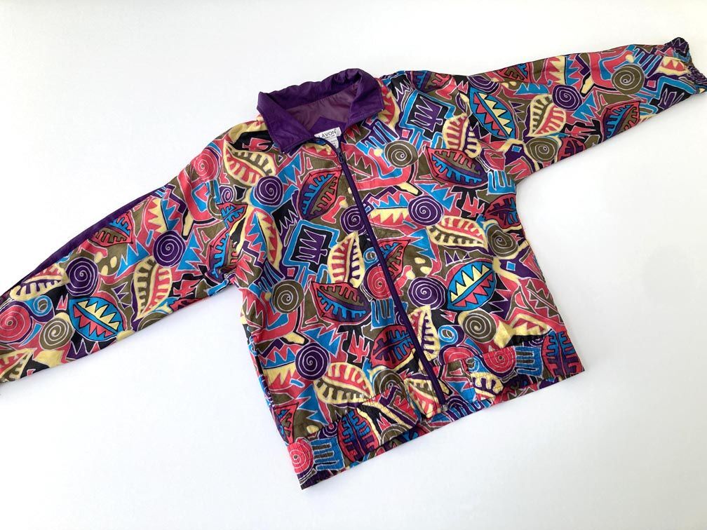 > LAVON 総柄 80s 90s ジップアップ ナイロン ジャケット sizeM/カラフル ■■ ☆ eed0 メンズ