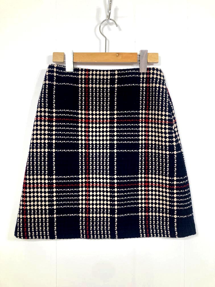 > ゆうパケットOK 美品 Rope Picnic ロペピクニック GDC-59340 ウール混チェック台形 スカート size38/紺 ◇■