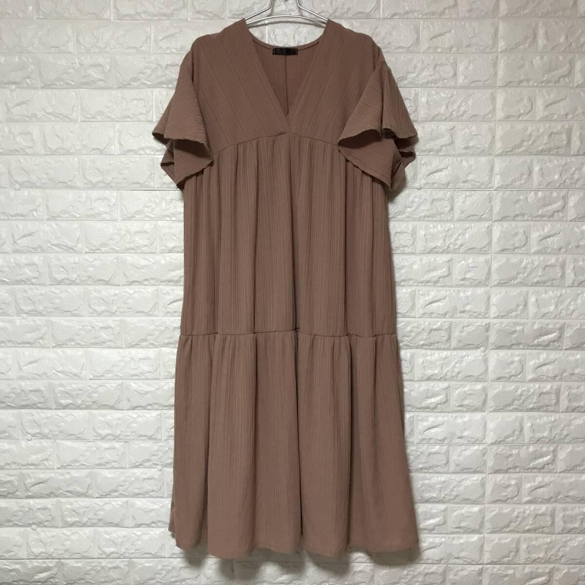 - 即決★ ロングワンピース ワンピース フリーサイズ 半袖 ティアード Vネック 森ガール