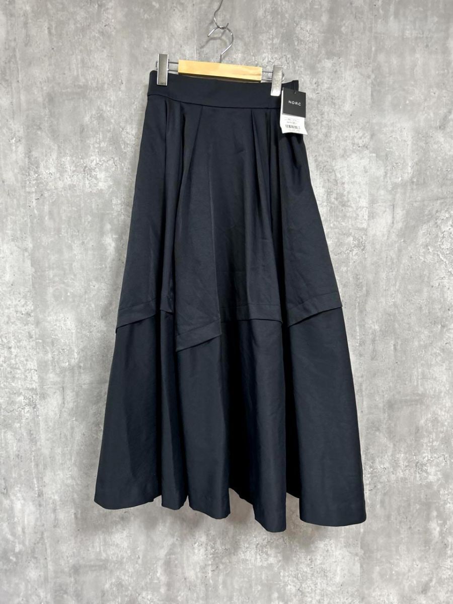 - 美品 N.O.R.C フレアスカート ボリューム ウエストゴム タグ付未使用品 ロング スカート size2/黒 ■■◎ レディース