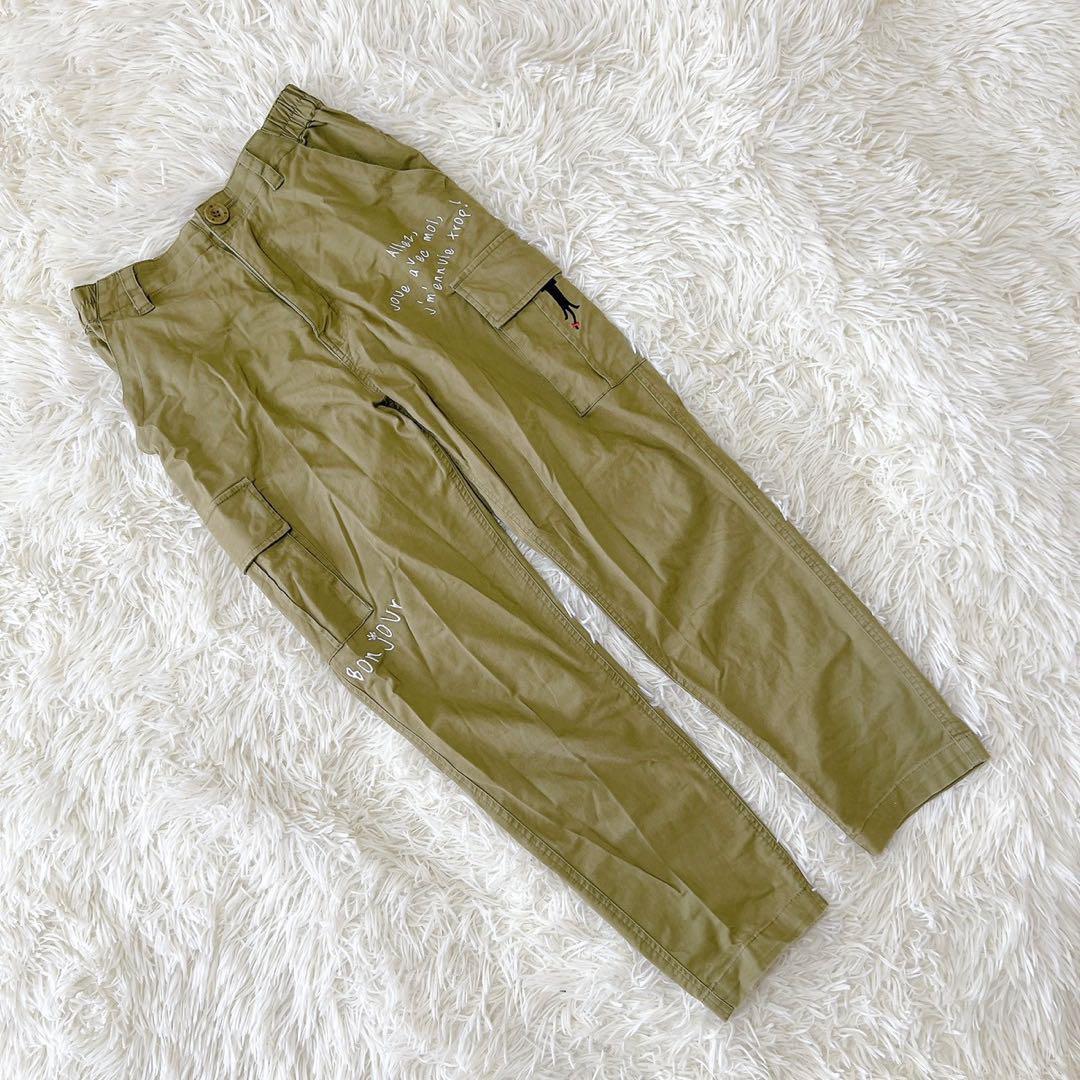- 《リディア》 (M) コットンストレッチカーゴパンツ 英字刺 ロゴボタン ラフ
