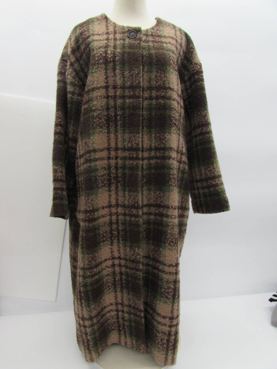- ubn hymns ドロップショルダー ノーカラーコート チェック柄 ブラウン系 茶色系 Mサイズ レディース