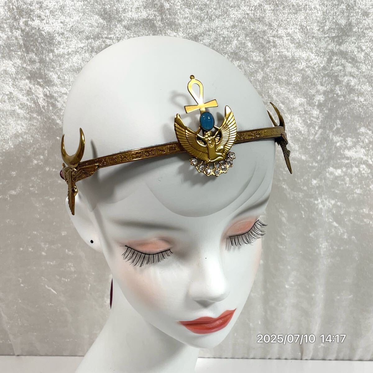 - 古代エジプト神話 女神イシス 翼 十字 アンク ラインストーン ゴールドカラー系 アンティーク調 髪飾り ヘアーアクセサリー 装飾品