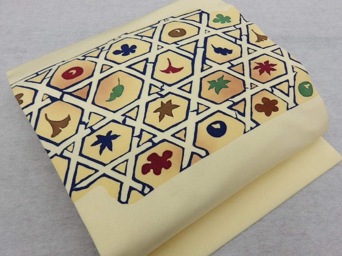 > 〔楽布〕P34553 手描き友禅 塩瀬 名古屋帯 k