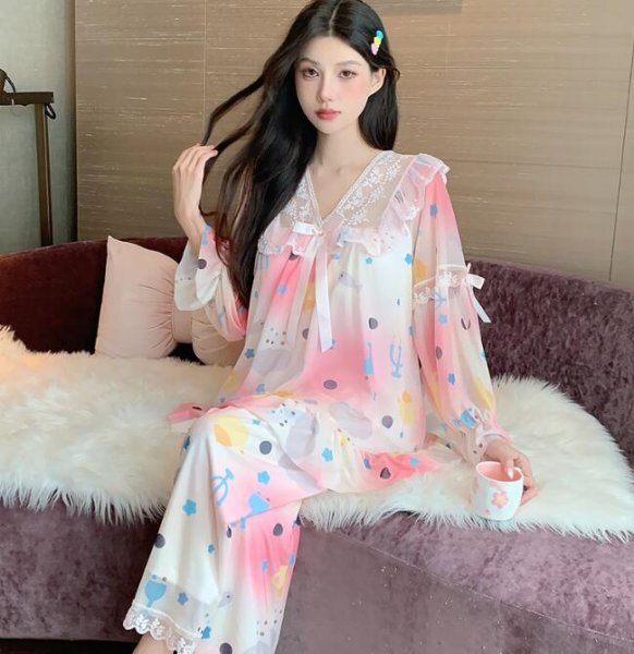 - DM0707 レディースナイトウエア☆ 大人sexy ナイトウエア☆ パジャマ 人気 ルームウエア 上下セット ピンク