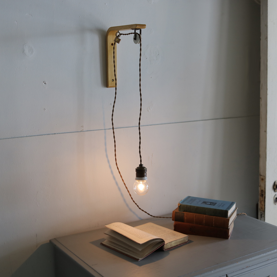 - 上下可動式 木製 ハンガーライトフランスアンティーク 真鍮ソケット 間接照明 ビンテージ ソケットランプ ペンダントランプ B*
