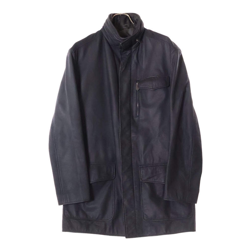 - HERMES エルメス M-65 TYPE スタンドカラー カウレザー ジャケット ハーフコート ブラック