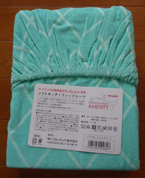 - 残し品処分♪半額以下♪エアクール抗菌フィットシーツ♪パイル地ボックスシーツ 抗菌防臭シーツ★シングルサイズ ミントグリーン色