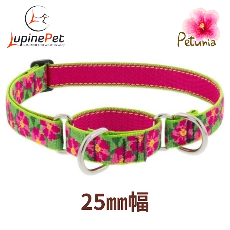 > ハーフチョークカラー・Mサイズ・25mm幅 ペチュニア柄petunia 38-55cm LUPINEルパイン アメリカ製 軽量 丈夫