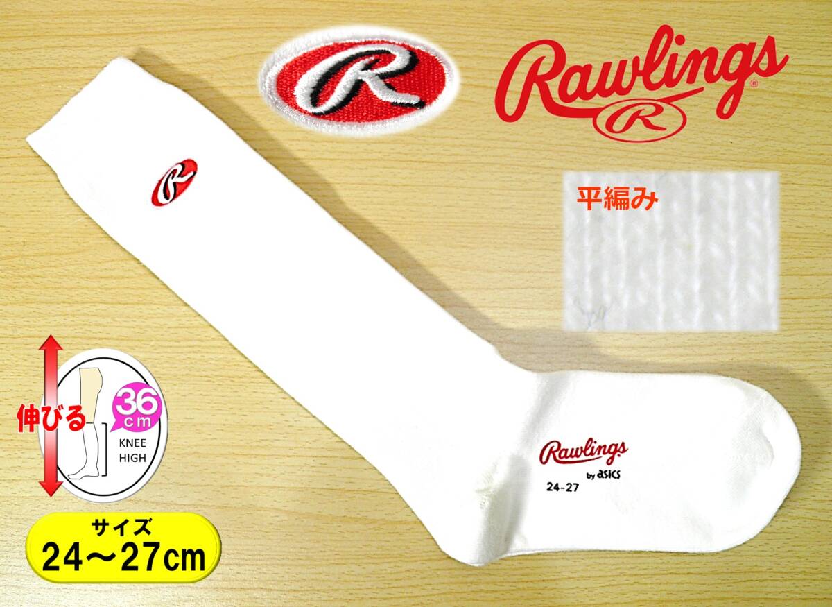 - 【未使用品★レッグウェア】Rawlings◆白 ハイソックス◆アンダーソックス◆厚手◆BIGサイズ◆24-27cm◆36cm丈◆よく伸びる◆