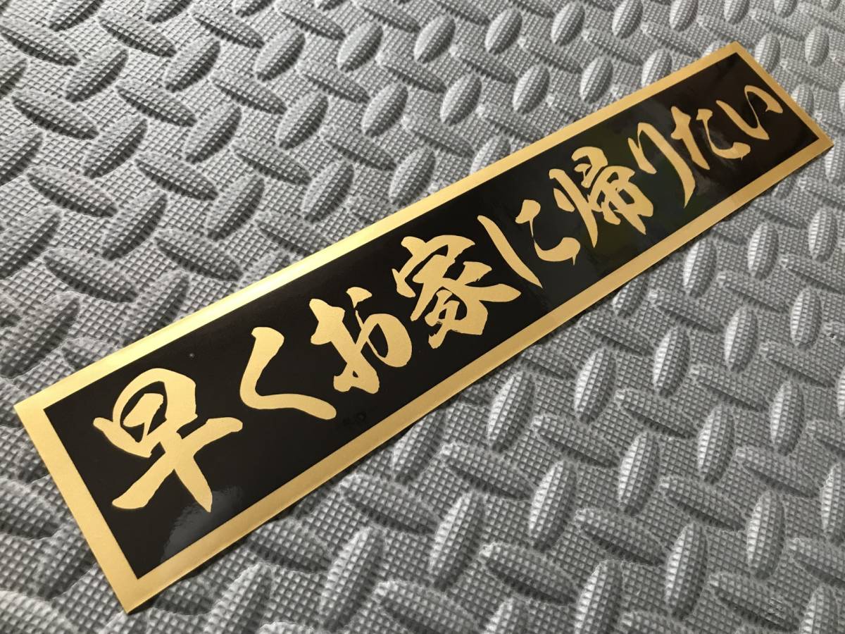 - 141 送料無料【早くお家に帰りたい】防水ステッカー 金文字/ゴールド デコトラ トラック野郎 スクリーン アートトラック 一番星 暴走族