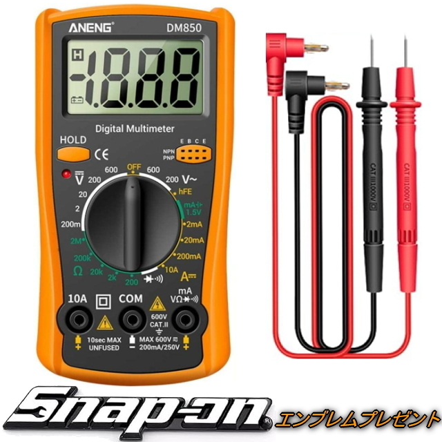 > スナップオンエンブレム付 高機能デジタルテスター オレンジデジタルマルチメータ電気自動AC/DC 電流 電圧 抵抗 計測 電圧電流測定テスター