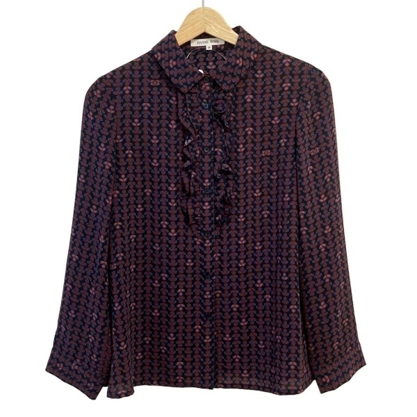 > ハナエモリ HANAE MORI 長袖シャツブラウス サイズ38 M - ダークネイビー×ボルドー×ネイビー レディース フリル トップス