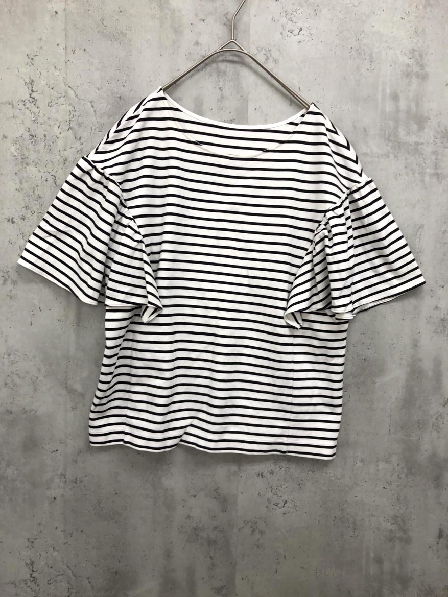 > ゆうパケットOK NOLLEY’S ノーリーズ ボーダー フリル袖 トップス カットソー size38/白x黒 ■◆ ☆ fgb5 レディース