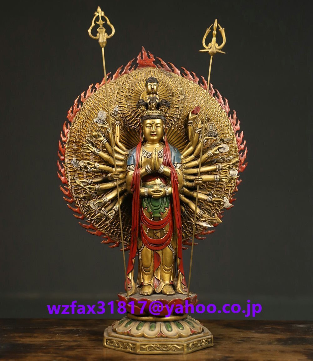 - 清時代 千手観音 銅塗金 細工彫刻★仏教古美術★仏像★細密細工★廃寺旧蔵