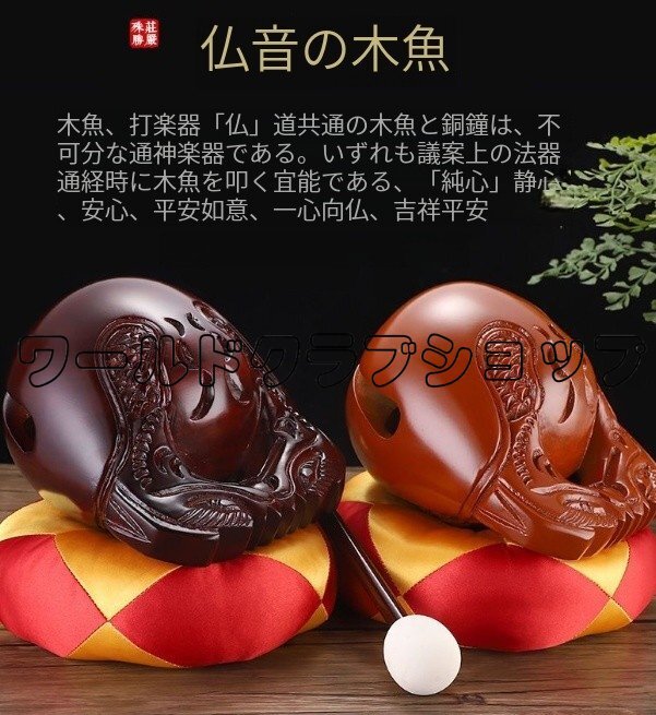 - 木魚 道教 打楽器 伝統 木彫り 楠(クスノキ)無垢材 台湾製 セット品 7寸