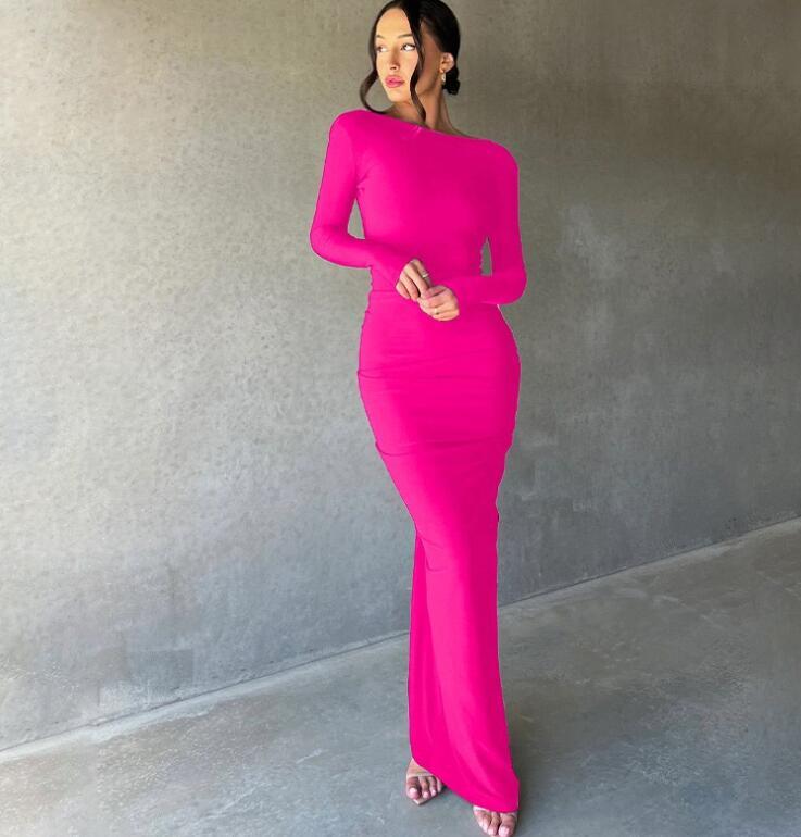 - M0715 ワンピースレディース● 20代30代40代 着心地抜群 ●dress タイト ロング丈 ローズ