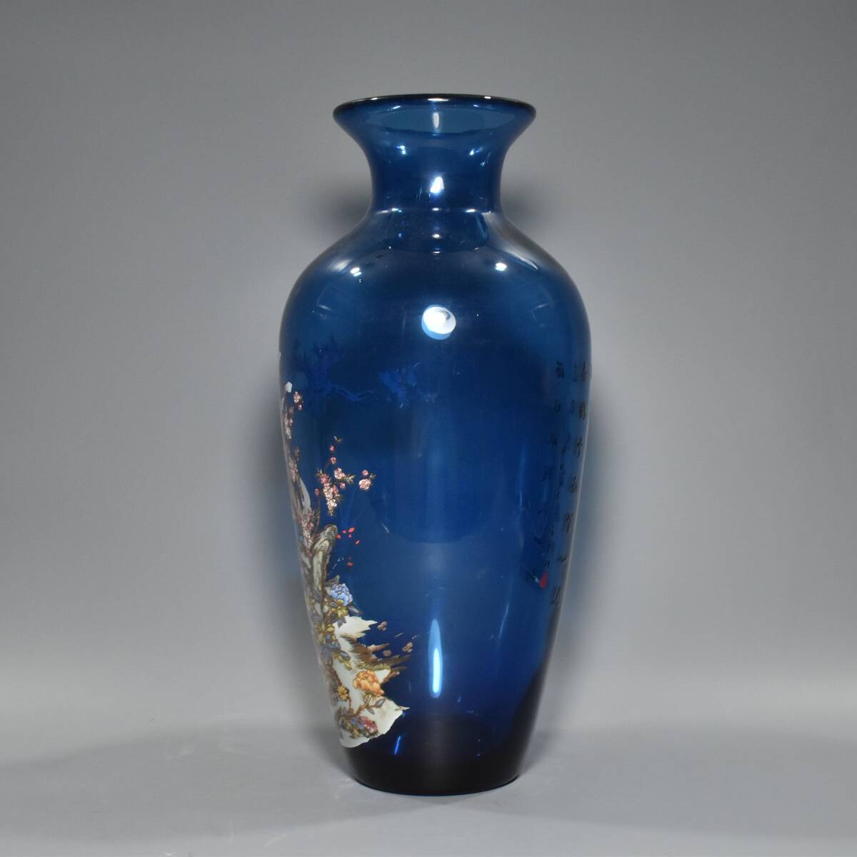 - 清時代 宮廷御藏 古宝石彫 藍宝石 花卉紋 花瓶 賞瓶 置物 時代物 古董品 骨董 旧家蔵出 唐物 中国古玩 古美術