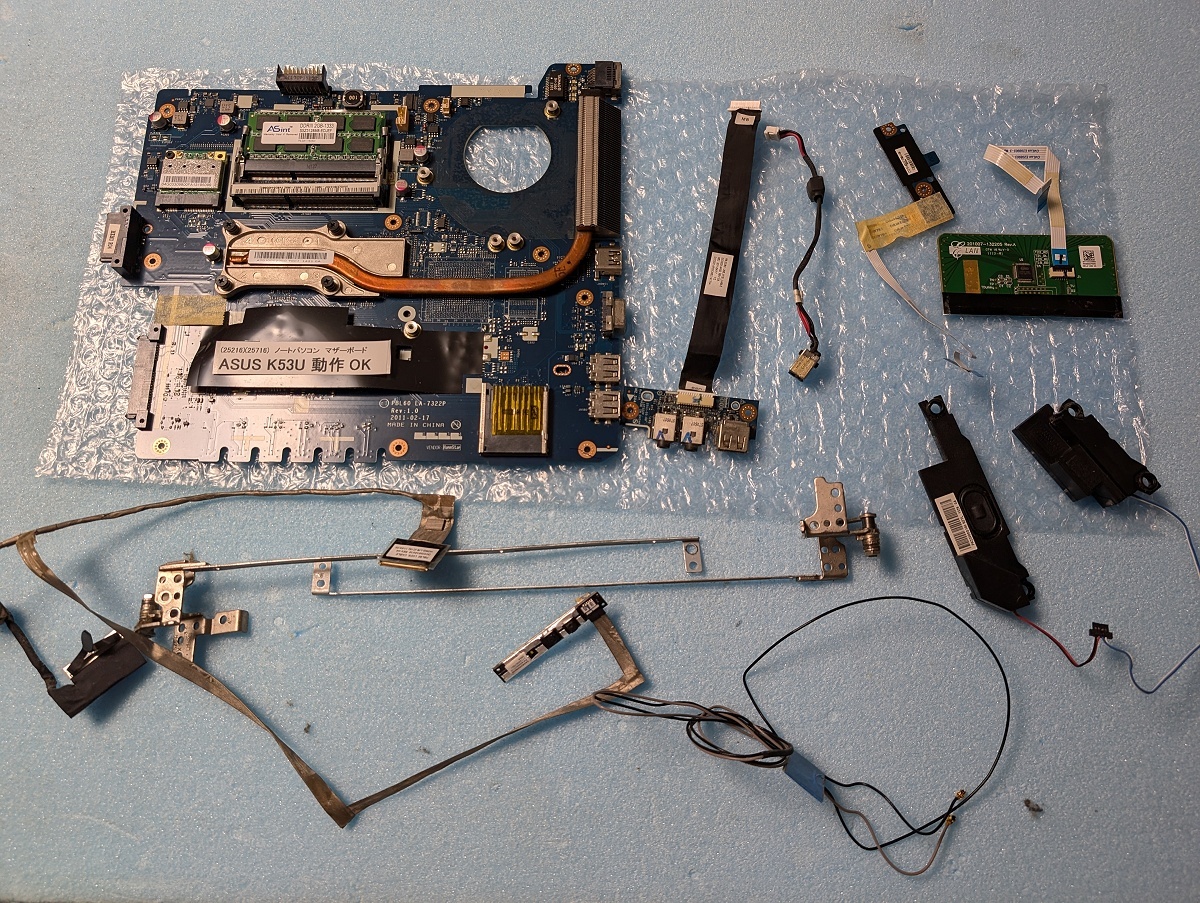 - 送料無料 ASUS K53U ノートパソコンの中身 マザーボード Wifi メモリ2GB 動作OK 起動OK ボディなし ファンなし(別途出品)補修用修理部品