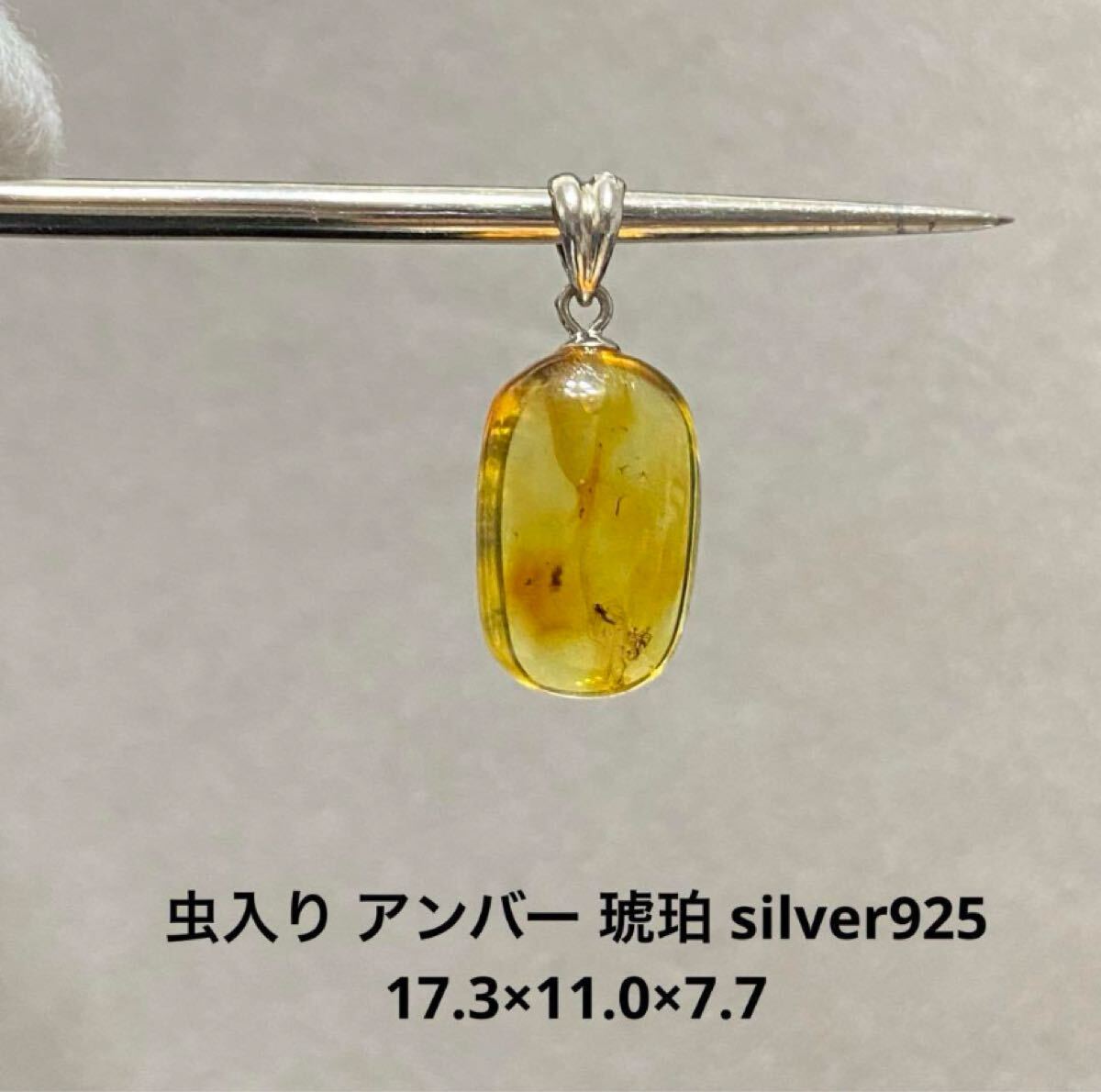- D559 虫入り アンバー 琥珀 silver925 17.3×11×7.7