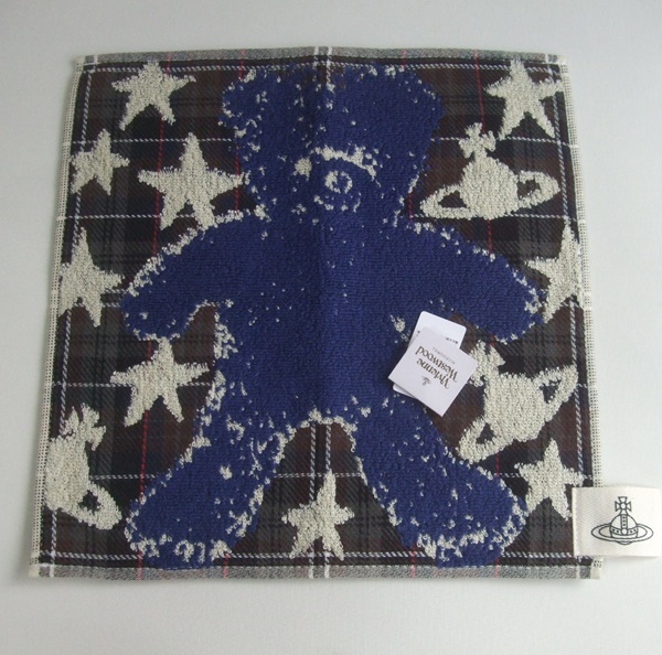 - Vivienne Westwood ヴィヴィアン・ウエストウッド チェック Teddy bear くま柄 テディベア タオル ハンカチ 未使用品 百貨店