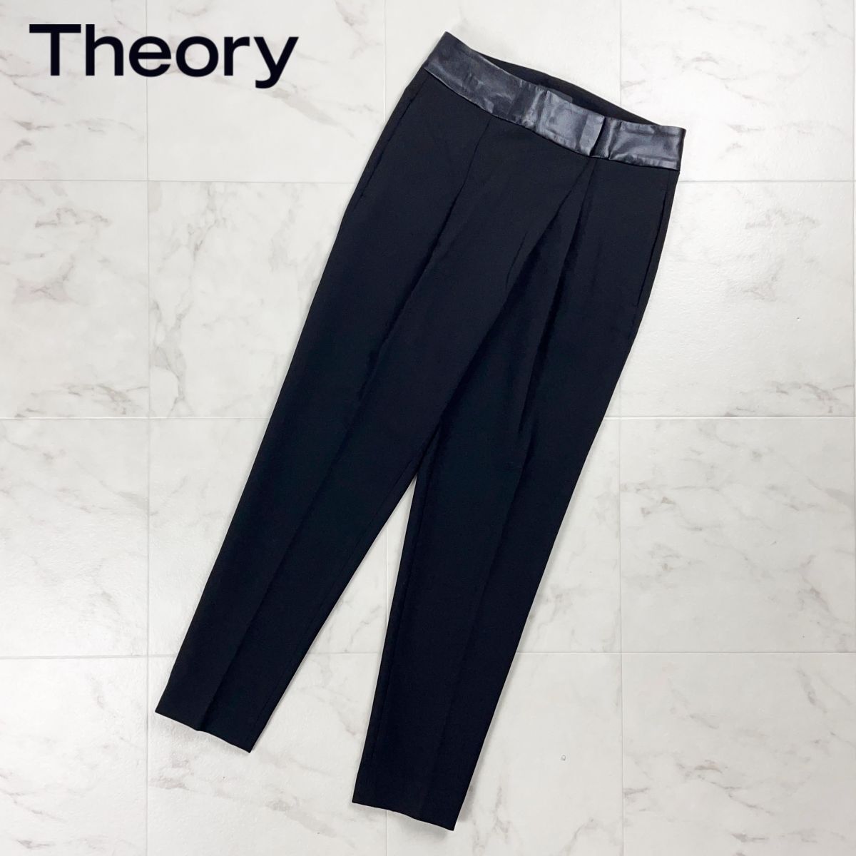 - Theory セオリー ウエストレザーデザインタックテーパードパンツ スラックス ボトムス レディース ブラック 黒 サイズ00*ED851