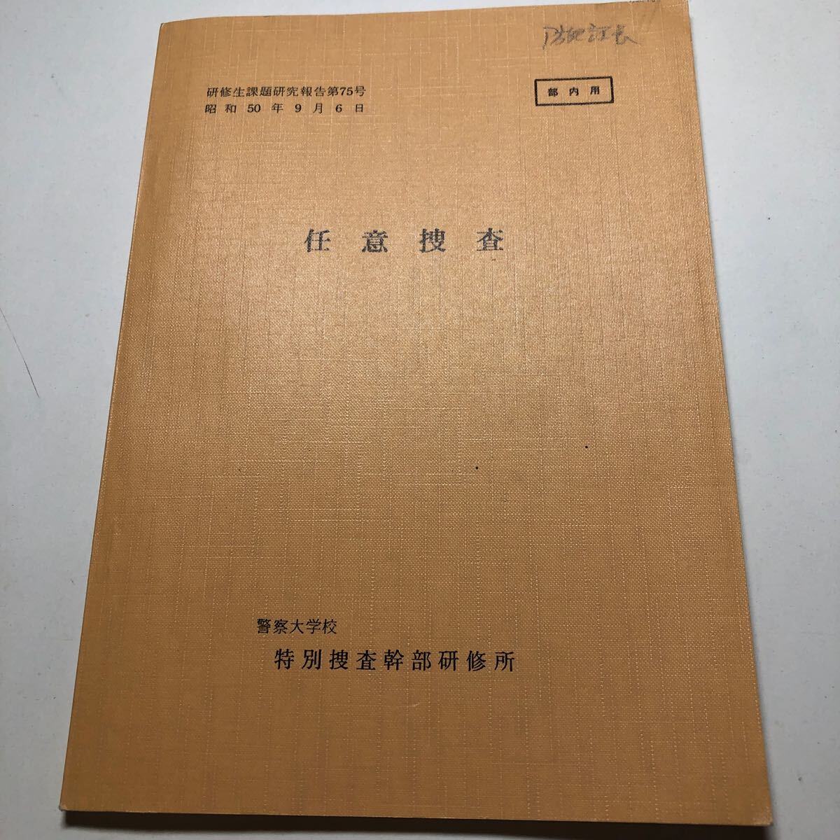 - M2d-013 任意捜査 警察大学校 特別捜査幹部研修所 研究生課題研究報告第75号 昭和50年9月6日 部内用 非売品 貴重品 プレミア 第16期研究生