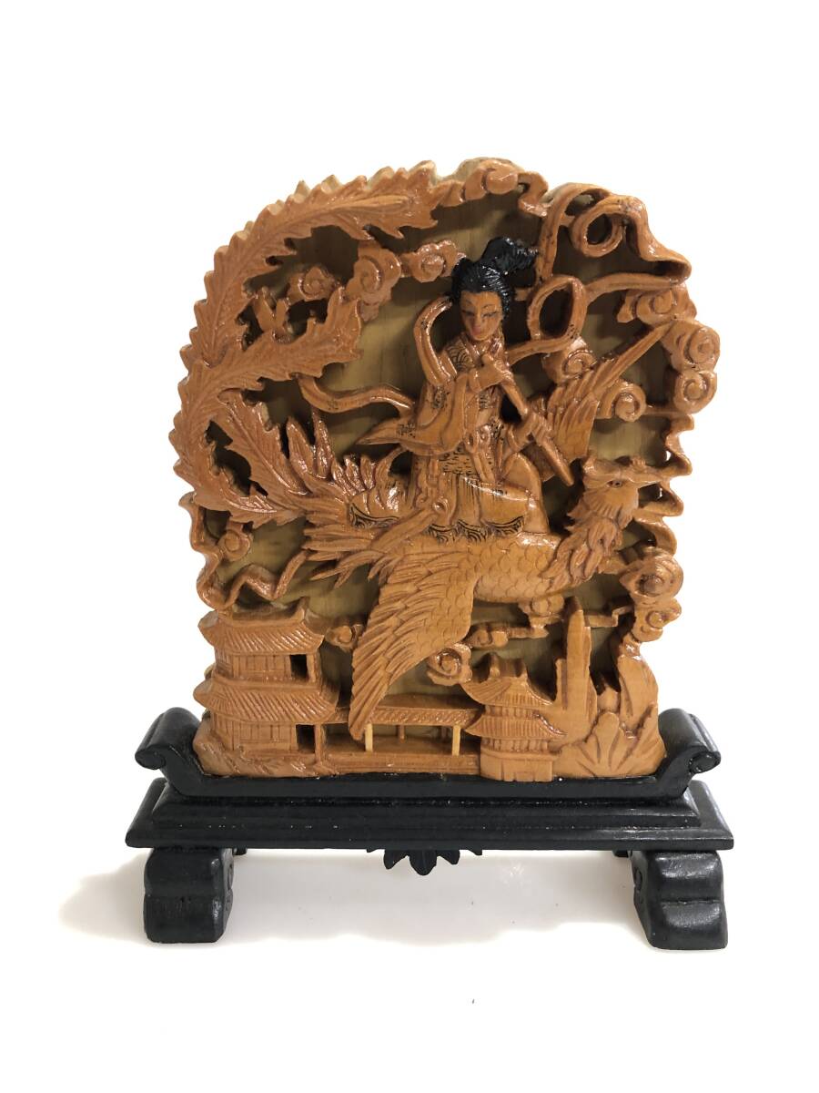 - DB4305 木製 木彫り 西王母? 鳳凰 置物 インテリア