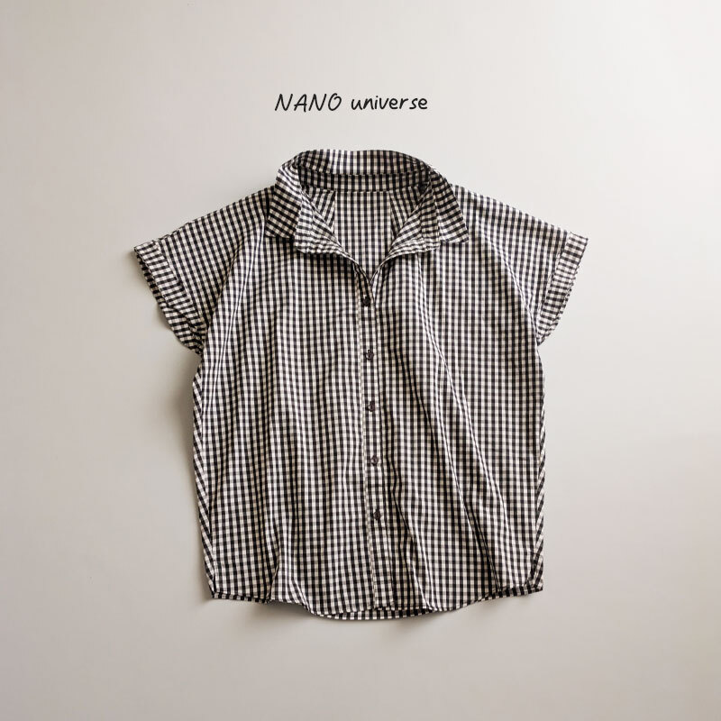 - 0466◆ナノユニバース ブラウス ブラック ギンガムチェック NANO universe