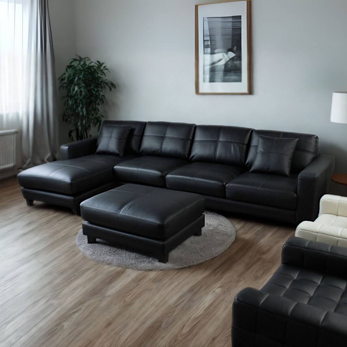 - 送料無料 ソファー ソファ カウチソファ 4人掛け コーナー L字 ブラック 黒 幅323cm 【カウチ座:座って右】本革 半革 1mm厚 172cp-2pclo