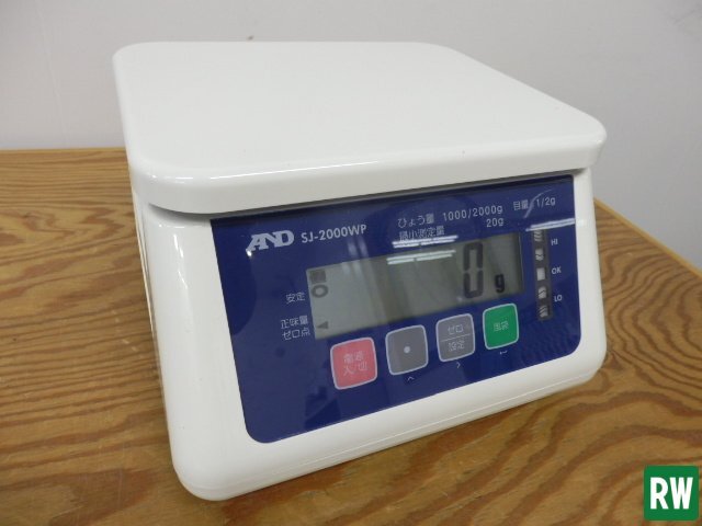 - デジタル 上皿はかり 2000g エー・アンド・デイ SJ-2000WP 2019年 幅235×奥行240×高さ145mm 計量器 計り 乾電池式 [2-250070]