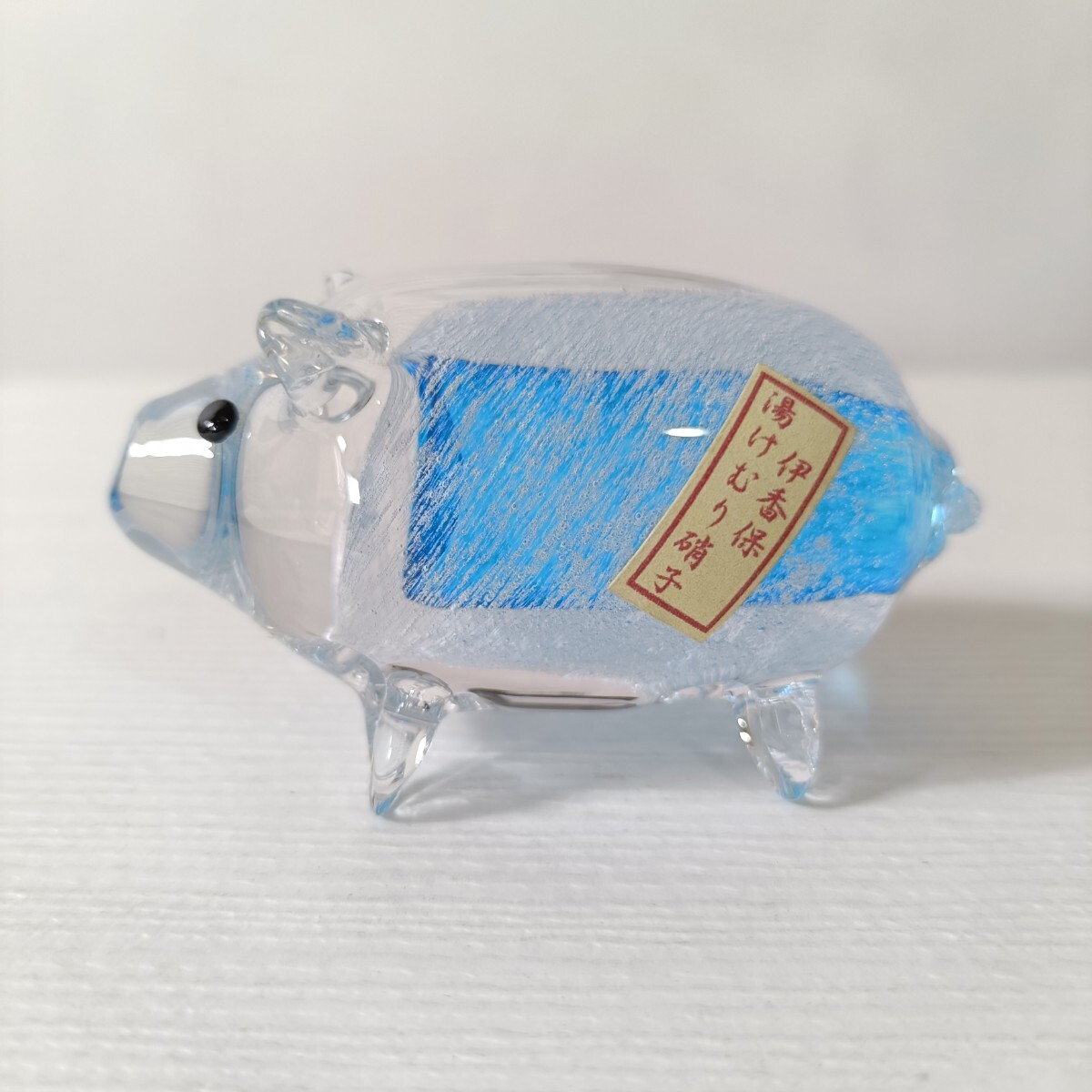 - 伊香保 湯けむり硝子 硝子細工 豚 ぶた 置物 7.5cm 未使用品 [硝子工芸品 ガラス工芸]