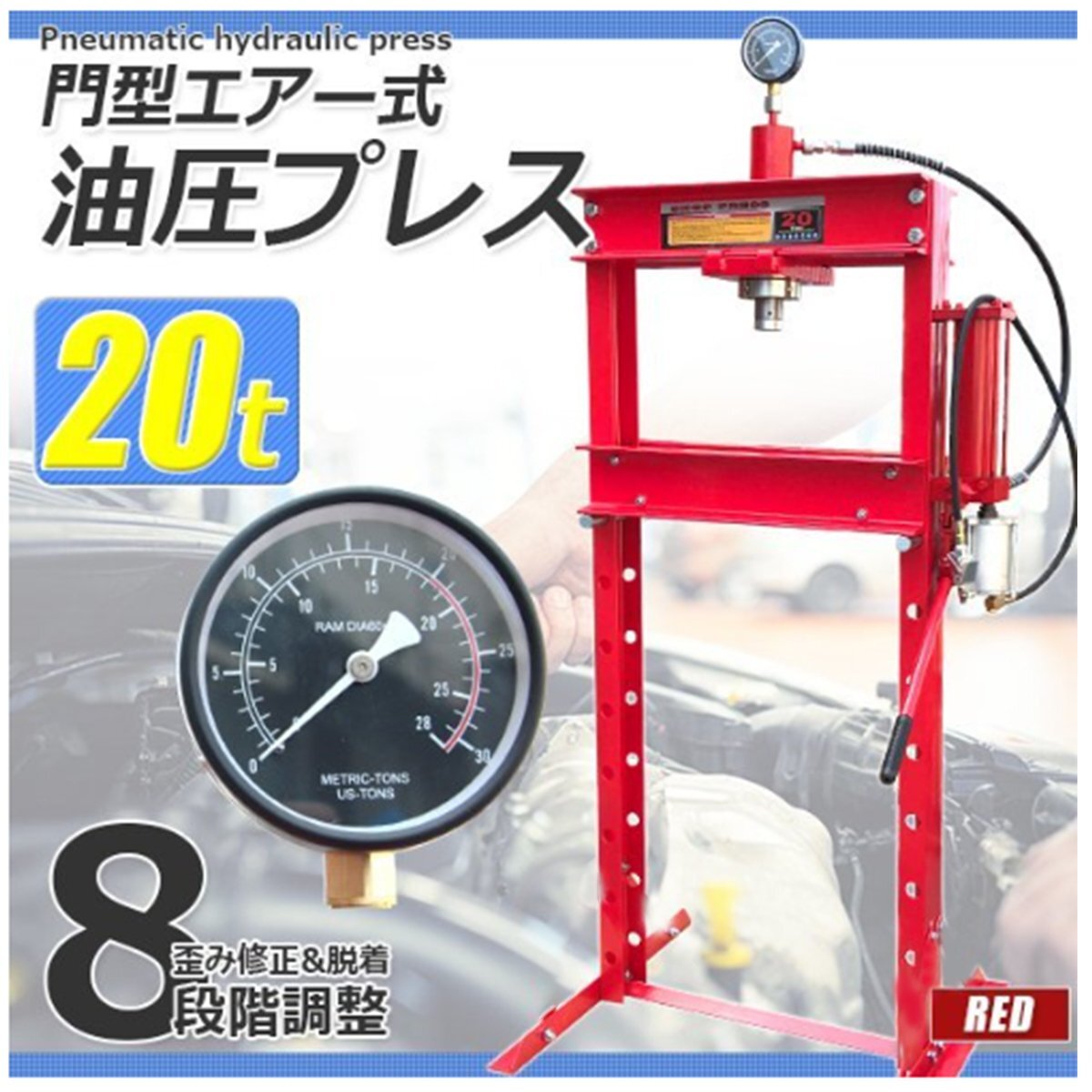 > 【正規品】メーター付 20トンエアー式 油圧プレス ショッププレス 門型 手動兼用 プレス機 車 バイク 整備 鉄板など歪み修正【送料無料】