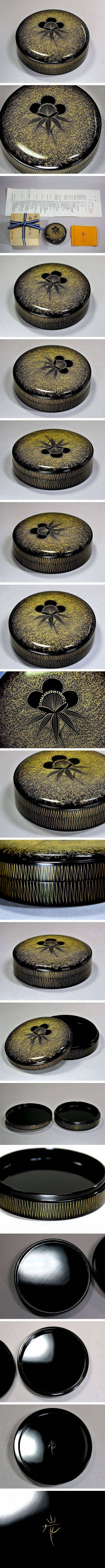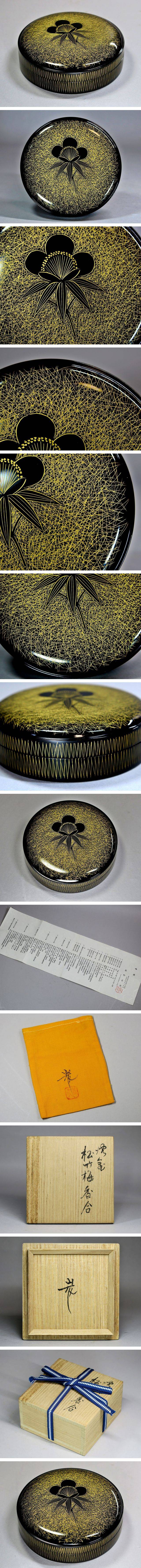 - ◇輪島塗巨匠 角野岩次 沈金松竹梅香合 布着堅牢 共箱 茶道具 美品