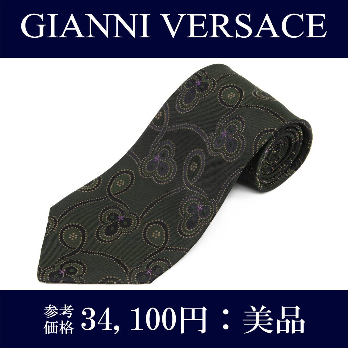 - 送料無料 ジャンニヴェルサーチェ ネクタイ レギュラータイ ジャガード シルク 緑 黒 ベージュ 紫 草 クローバー 花 ブランド 綺麗 P088
