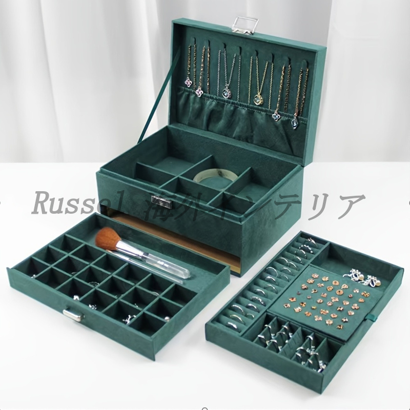 - ジュエリー ボックス ラグジュアリー ベルベット調 大容量 おしゃれ かわいい 収納 アクセサリー ケース プレゼント ピンク 黒 グリーン