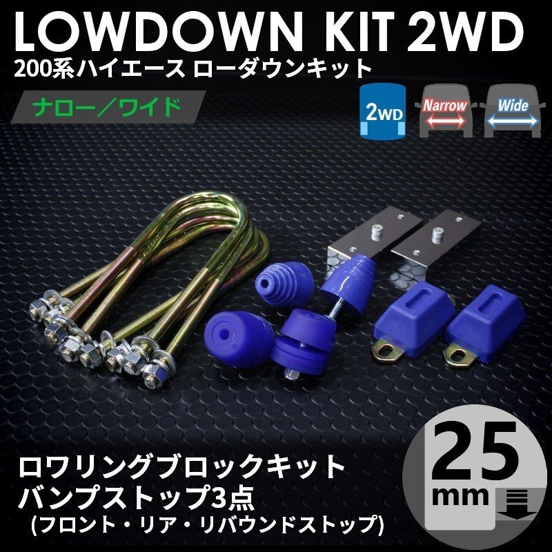 - ○ティスファクトリー○ ハイエース 200系 1型-7型 2WD ローダウンキット 1 [ブロック25mm (1インチ) + バンプ3点] ワゴンGL 標準 ワイド