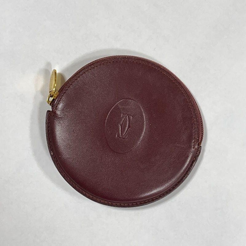 > Cartier/カルティエ/スペイン製/ラウンド型レザーコインケース/小銭入れ/マストライン/ゴールド金具/ロゴエンボスデザイン