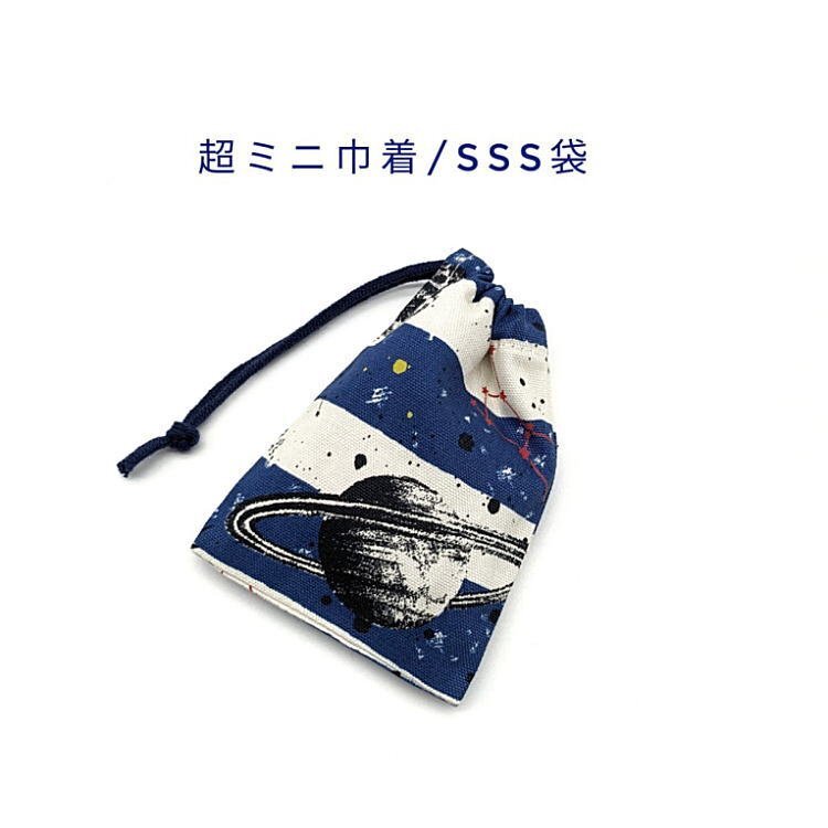 - 超ミニ巾着袋・SSS袋【宇宙ボーダー柄 ネイビー】マチ無し 日本製 ポーチ お菓子袋 小物入れ 収納袋 男の子 星 銀河 惑星 地球 月 星座