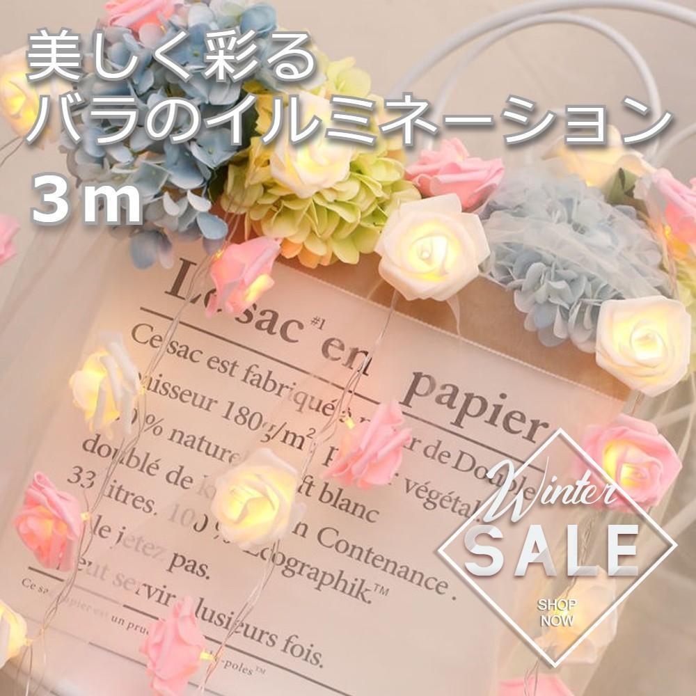 - イルミネーションライト 薔薇 ローズ 3m20個 ピンク×ホワイト USB