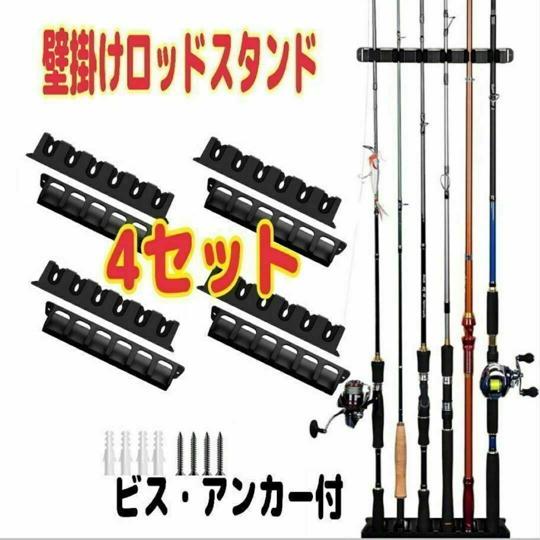 - ロッドスタンド お得な4セット 壁掛け 釣竿 ロッドホルダー ラック 保管 収納