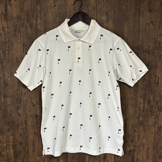 > A467◇IGNIO | イグニオ ゴルフ柄ポロシャツ オフホワイト×ネイビー×レッド メンズ Mサイズ 中古品