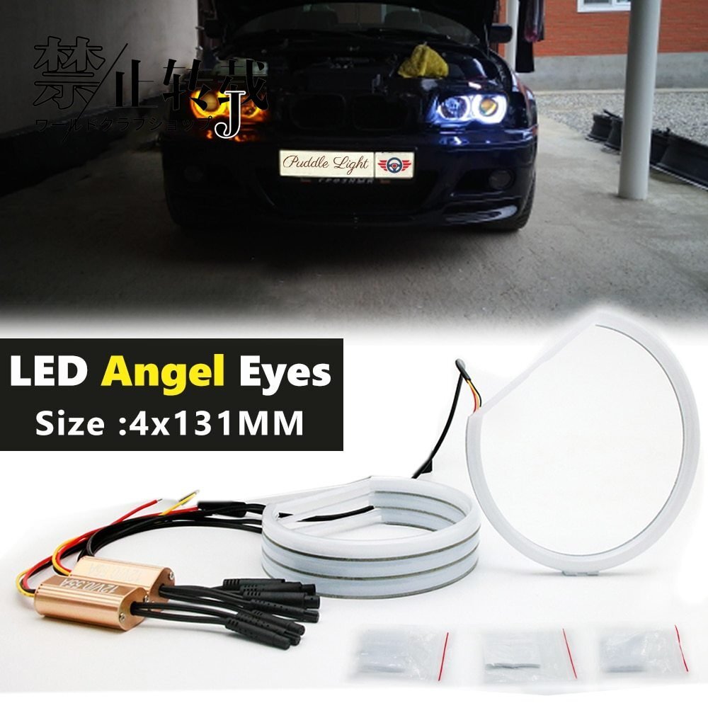 > 車デュアルカラーホワイト黄色 4X131MM LED ハローリング綿 BMW E36 E38 E39 E46 M3 LED SMD 天使目ランプ