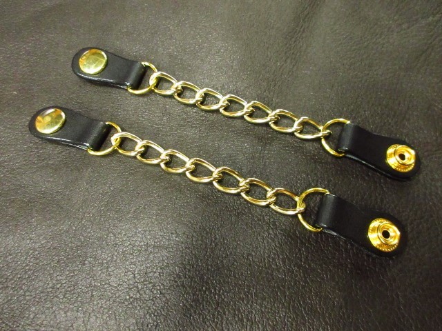 - 牛ヌメ革 レザー ベスト エクステンダー 2個セット 金色 革ベスト用(ライダース バイカー ベスト チェーン サドルレザー ゴールド色 ⑯