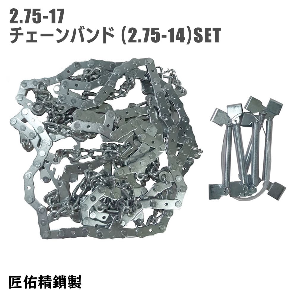 > 雪道用 バイクチェーン 2.75-17 タイヤ チェーンバンド 2.75-14 セット クロスカブ 匠佑精鎖 日本製