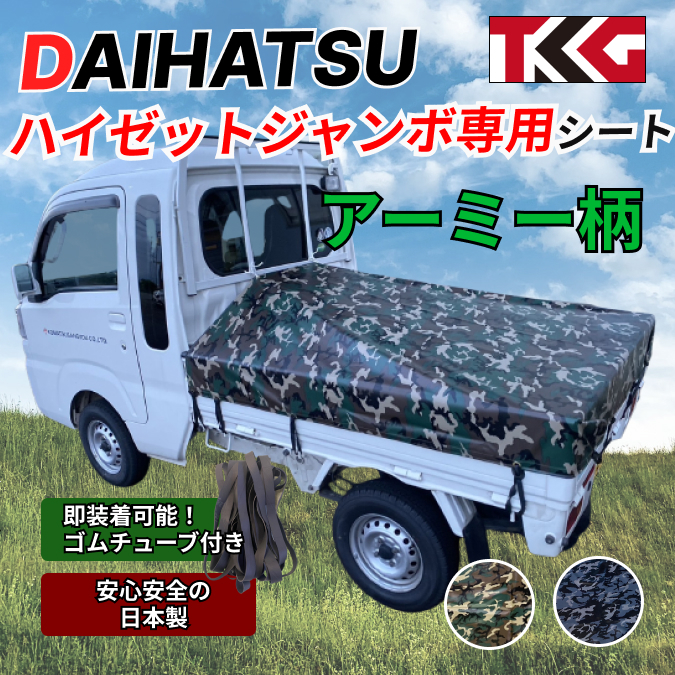- 【ゴムチューブ付き】ダイハツ ハイゼットジャンボ専用 荷台シート アーミー