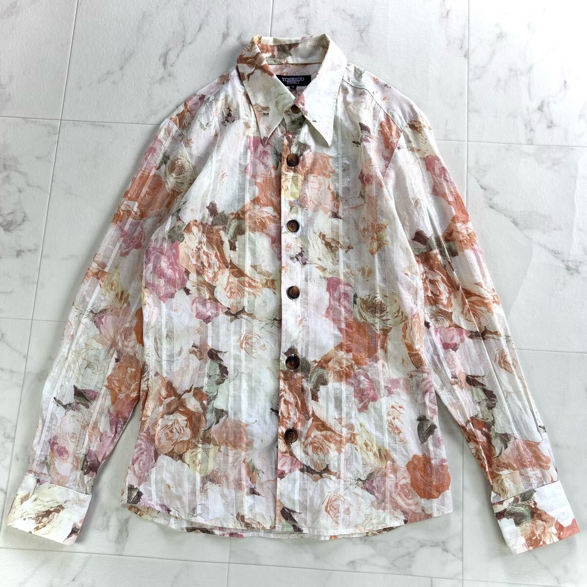> TORNADO MART トルネードマート 光沢 長袖 シャツ 花柄 ピンク イエロー オレンジ 派手 ギャル メンズ 日本製 洗濯可能 M